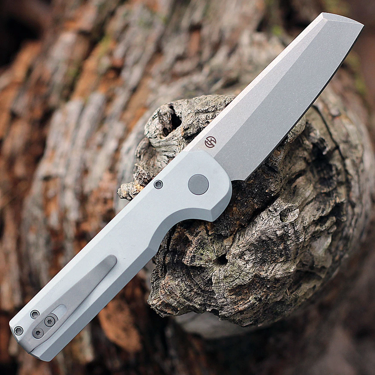 Arcform Slimfoot Automatic (ARC-103) – 3.12″ 154CM Stonewash Sheepsfoot Blade, Gray Aluminum Handle