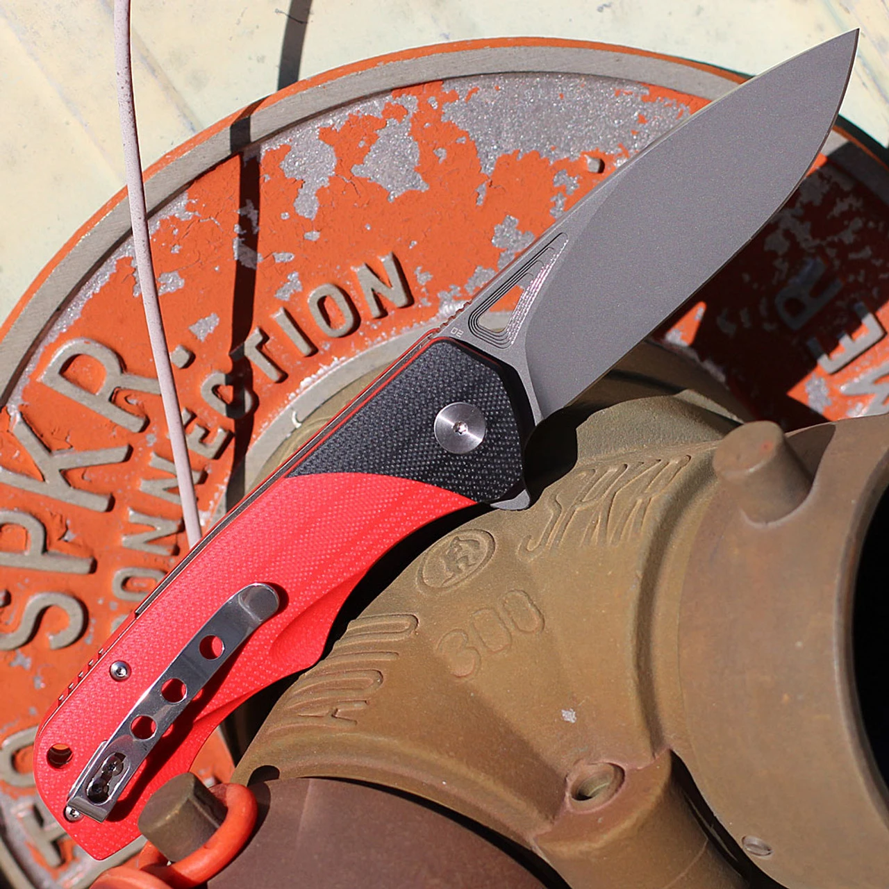 Bestech Airsteam Folding Knife (BG47D) – 3.9″ D2 Gray Drop Point Blade, Red and Black G-10 Handle