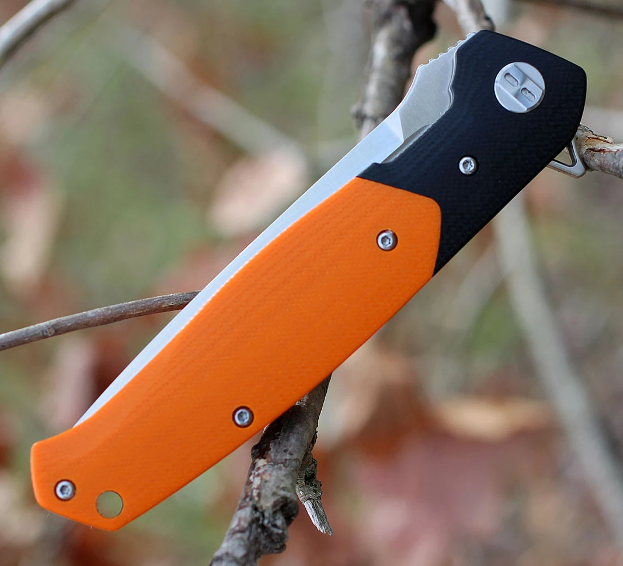 Bestech G03C Swordfish, 4″ D2 Plain Blade, Black & Orange G-10 Handle