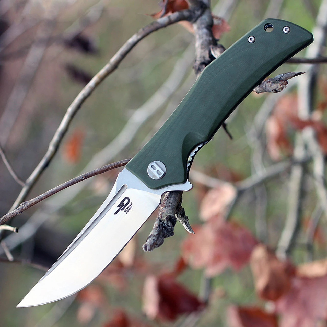 Bestech G05B1 Scimitar, 3.75″ D2 Plain Blade, OD Green G-10 Handle