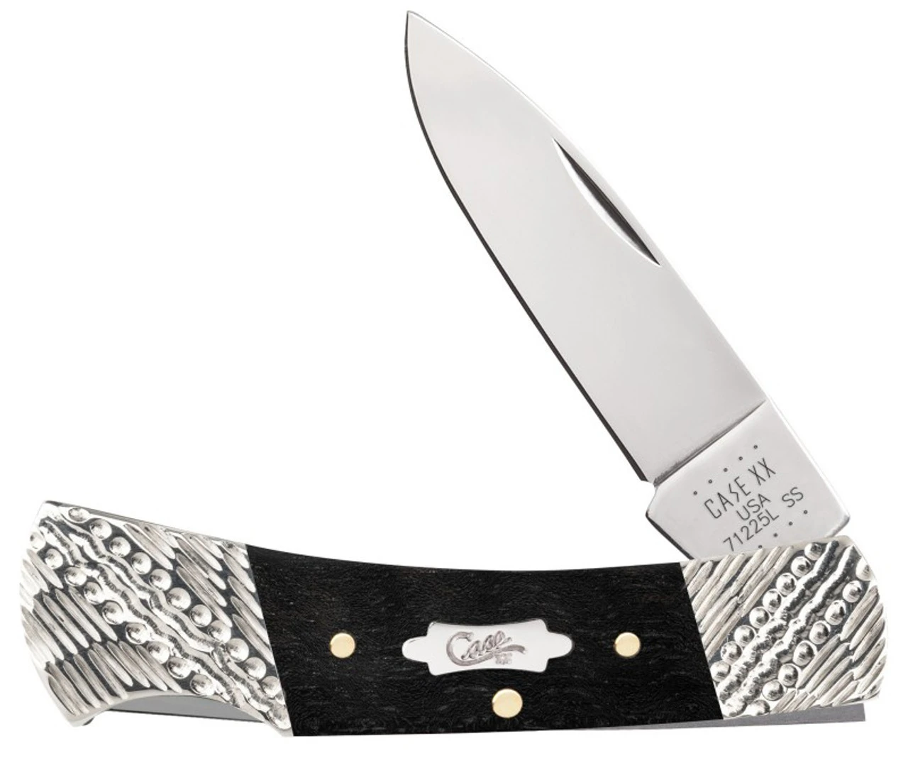 Case Lockback 59672 Ebony Wood Handle w/ Worked Bolsters (71225L SS)