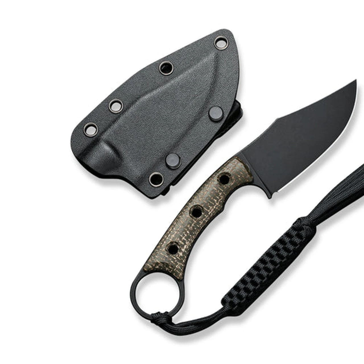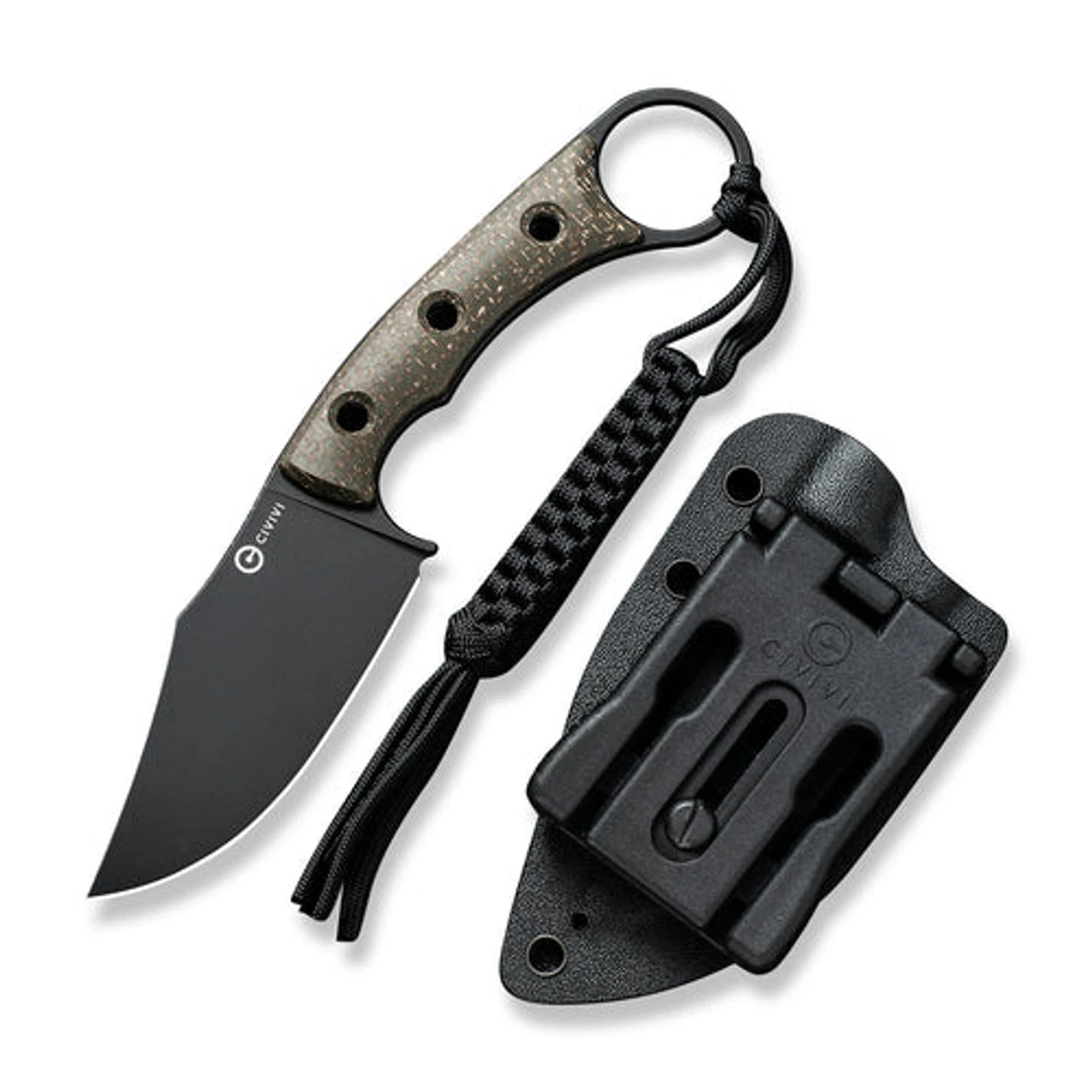 Civivi Midwatch Fixed Blade Knife (C20059B-3) 3.39″ Black Stonewashed Bohler N690 Plain Clip Point Blade, Green Burlap Micarta Handle