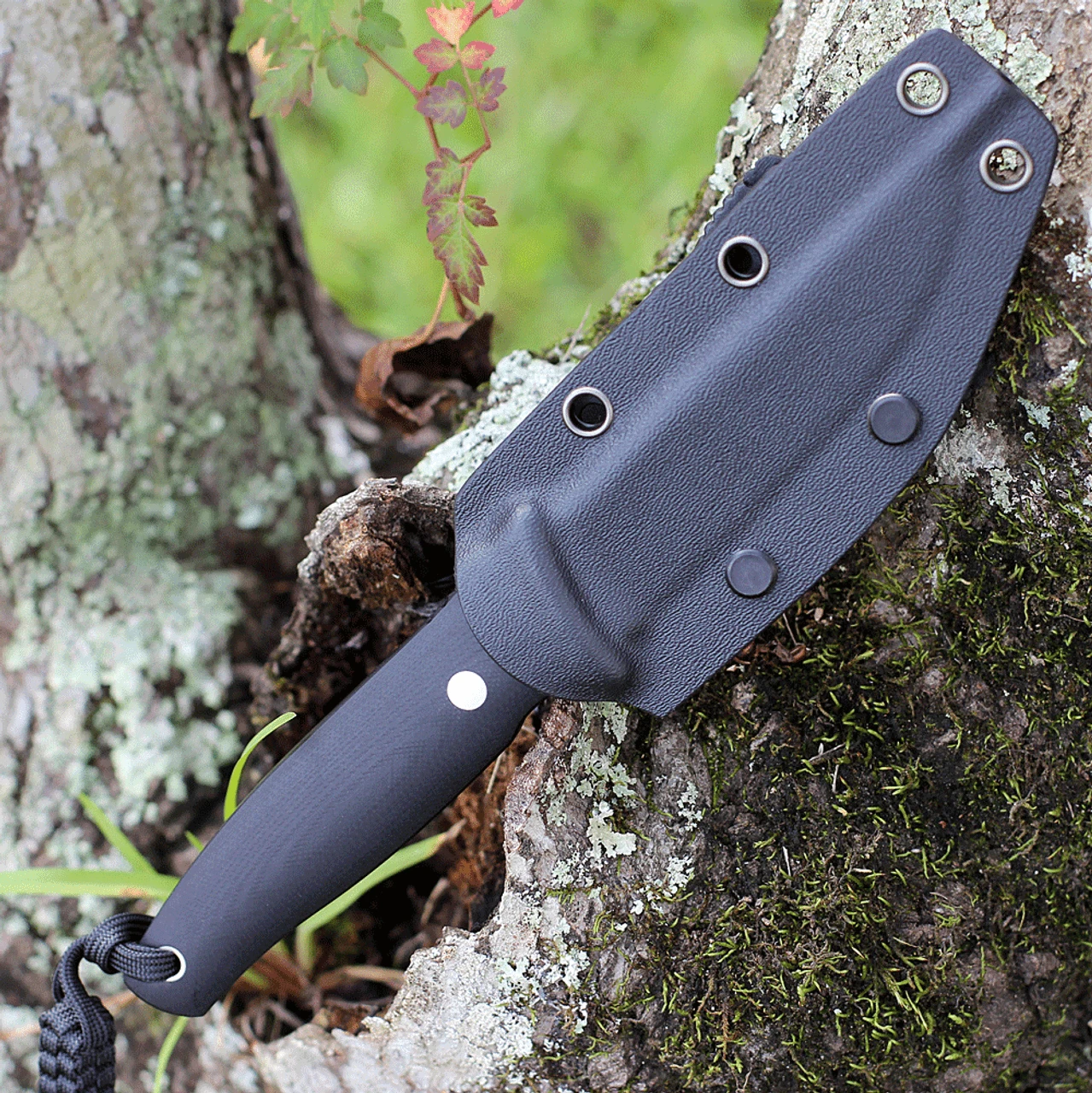 - T-Clip attachment, Kydex sheath, and a lanyard hold for carry.