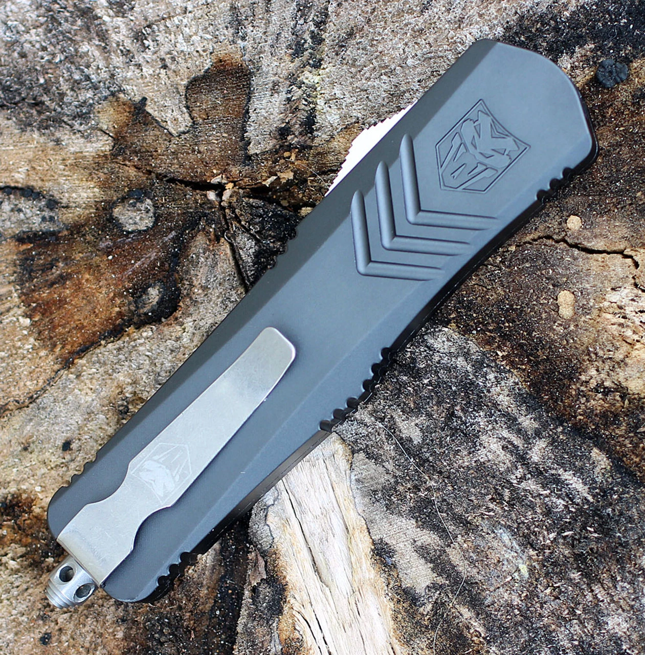 This CNC Machined OTF knife is very sleek and fits nicely in your pocket. The handle is expertly engineered from Aviation Aluminum and features a D2 Steel blade. The knife is ambidextrous as the pocket clip can be switched to either side of the handle depending on your preference