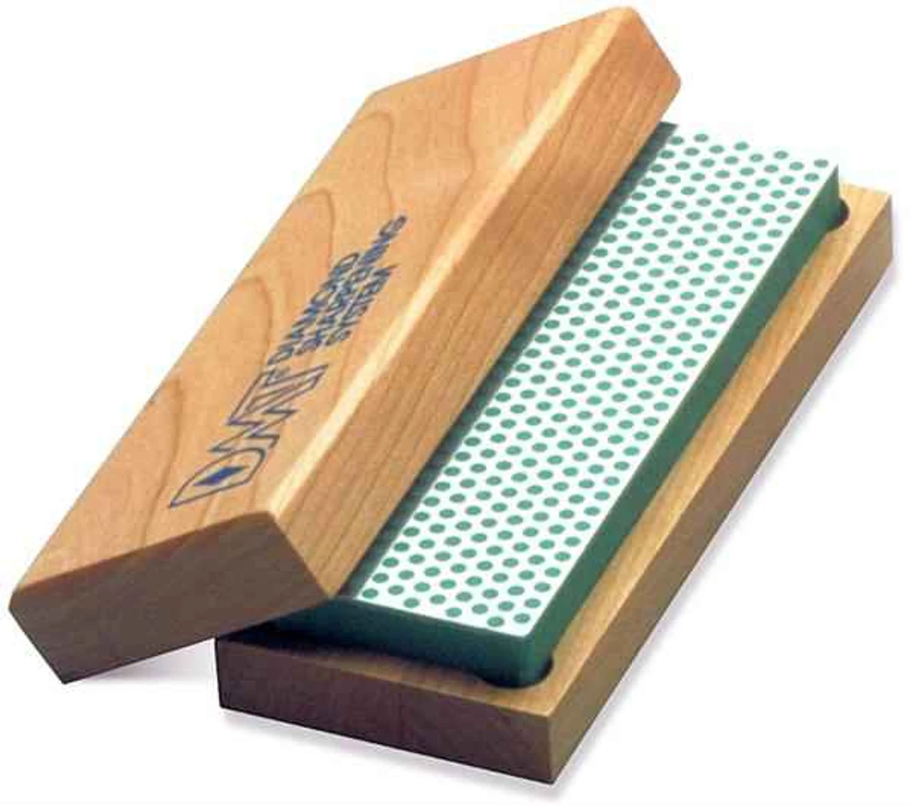 A popular sharpening choice, DMT Diamond Whetstone sharpener is a fit at home or in the shop offering a sharpening surface to satisfy a variety of edge care needs. This 6″ Diamond Whetstone sharpener comes with a beautiful hardwood case.Includes non-skid rubber feet. Extra-Fine diamond (9 micron / 1200 mesh) to polish and refine a razor edge after sharpening with a coarser diamond. Size:6″ x 2″ x 3/4″.Sharpening with diamonds is fast and easy. No messy oils neededsharpen dry or with water. Durable construction will provide years of consistent performance and reliable service For proper tool maintenance, woodworkers, chefs and other professionals rely on the superior quality and versatility of DMT products. Made in USA.